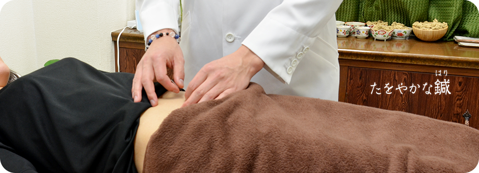当院では、純粋な東洋医学に基づく「脈診流経絡治療」により、身体のあちこちの辛さを解消いたします。施術中に不快感があってはならないので、痛い鍼、熱いお灸はいたしません。ほとんど皮膚に当てるだけの鍼と、心地よい温度のお灸で、リラックスして治療を受けていただけます。